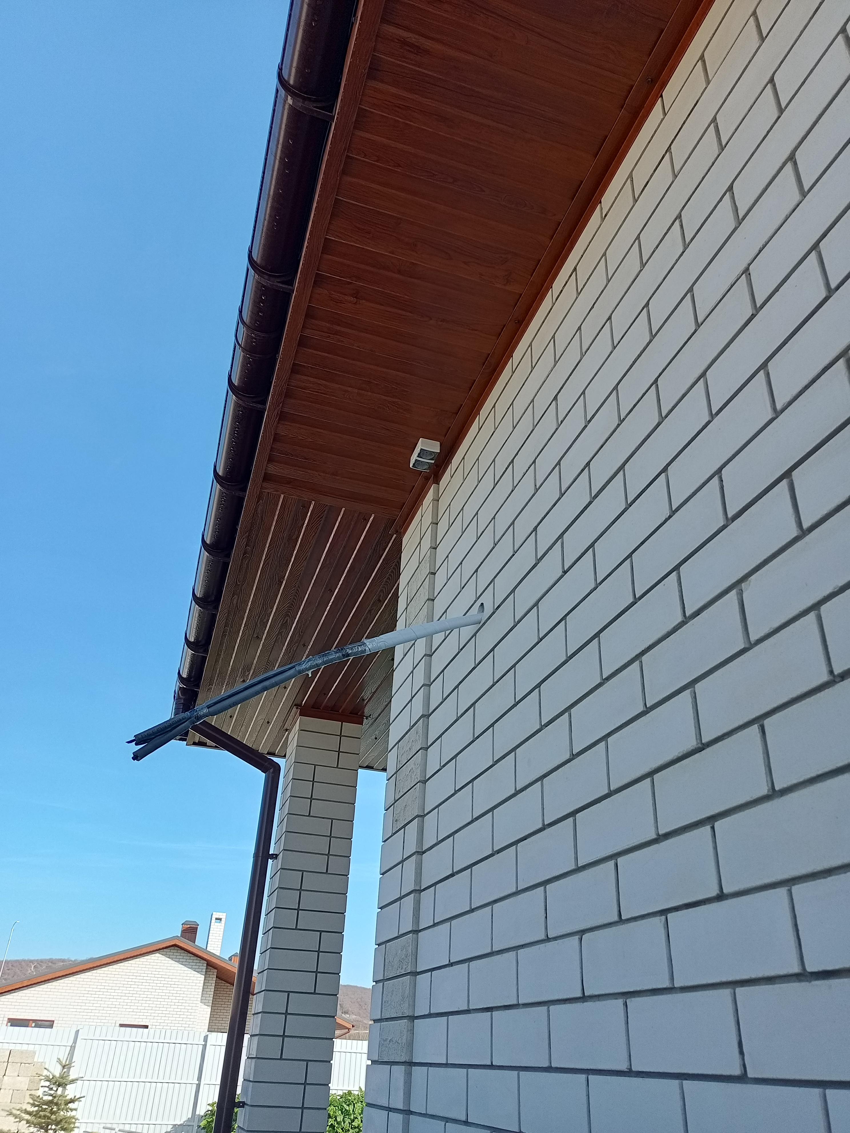 Установлены шесть розеток под козырьком, по периметру дома для уличных гирлянд.