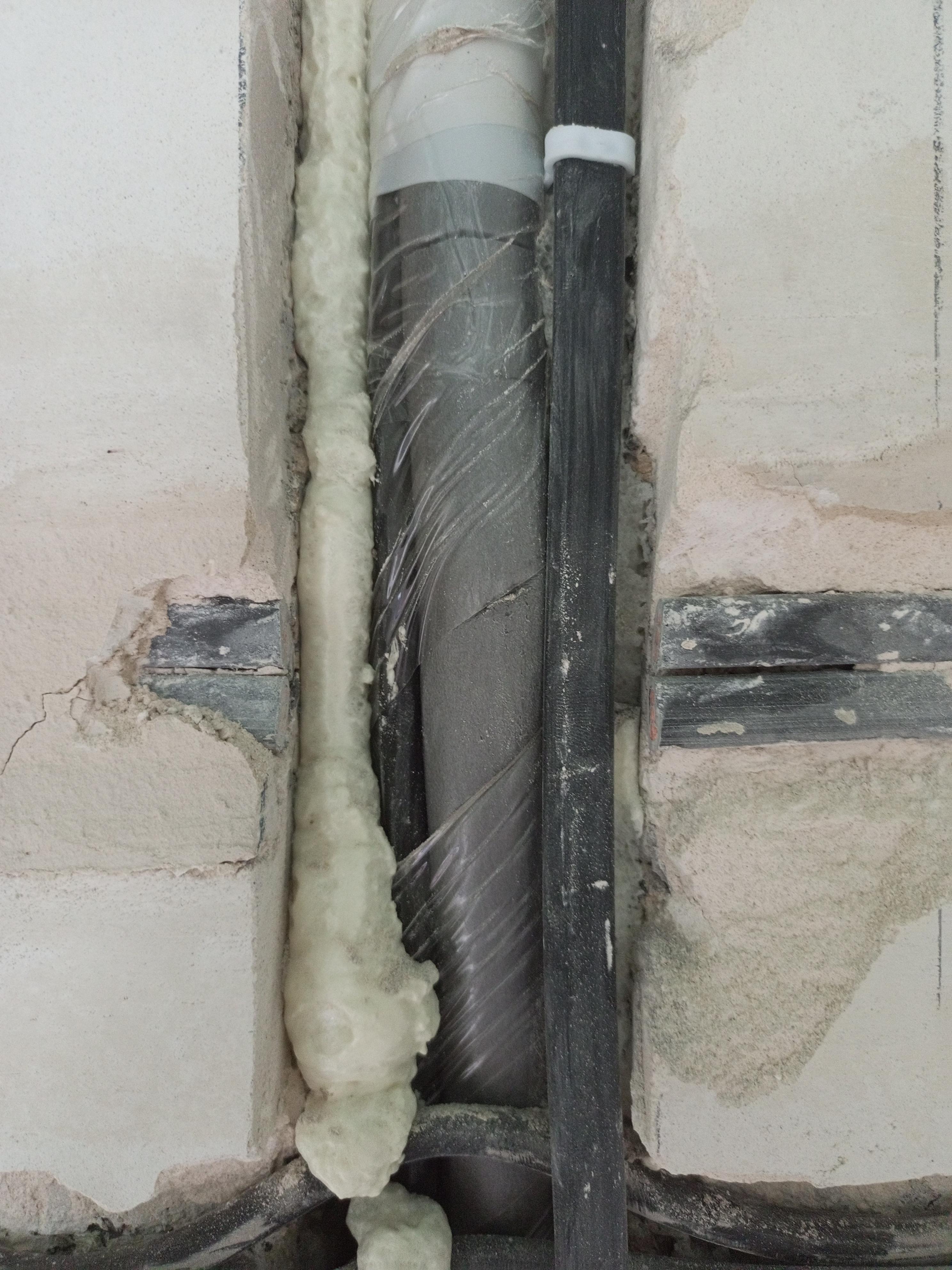 Очередной домик в коттеджном поселке г. Новороссийск, х. Семигорский. Усовершенствовали электропроводку от застройщика под нужды заказчика. Во время осмотра и диагностики, обнаружили повреждение кабеля, возникшее при прокладке труб для сплит-системы. Вывели обрезанные концы на потолок и спаяли их в двух распредкоробках.