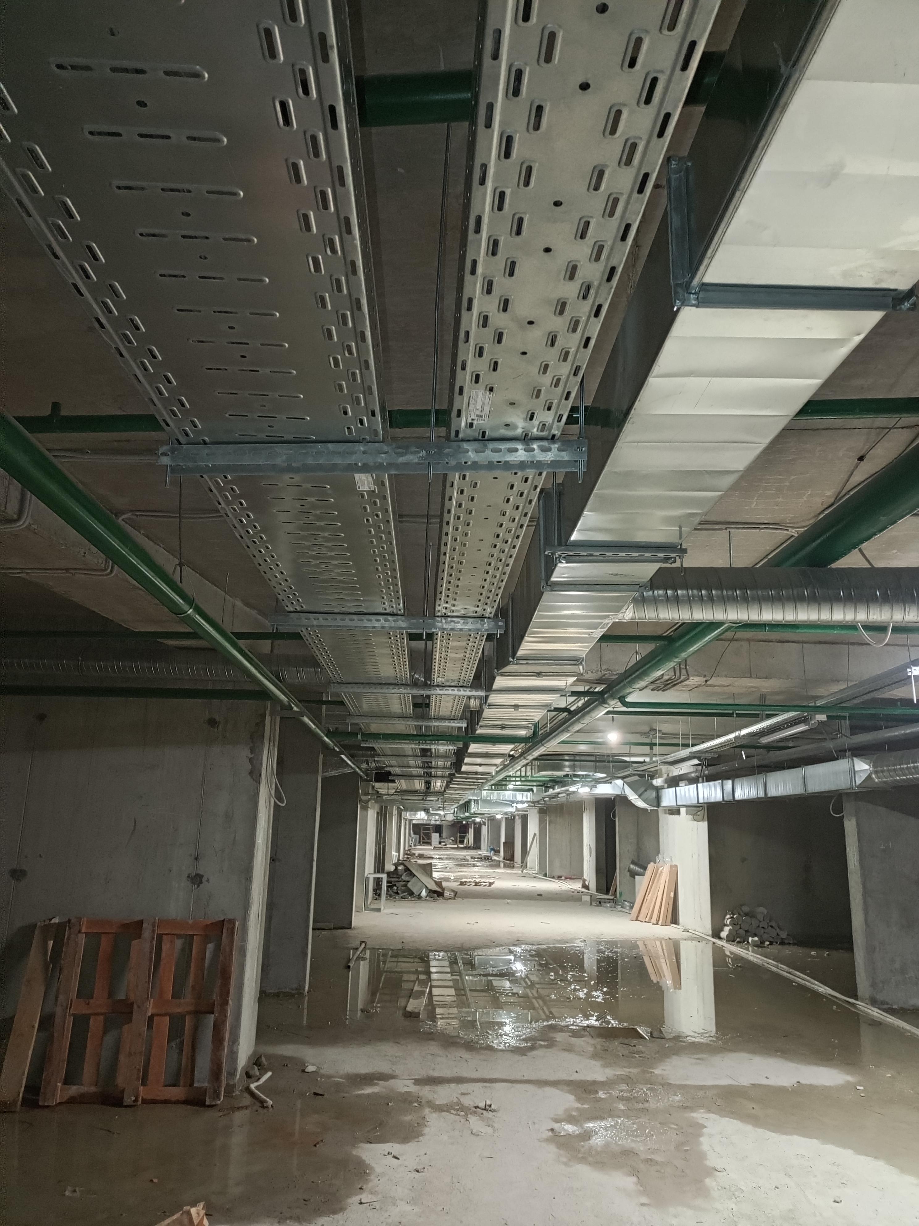 Монтаж силовых, осветительных, аварийных противопожарных кабельных линий выполнен в металлическом лотке на подземной парковке.