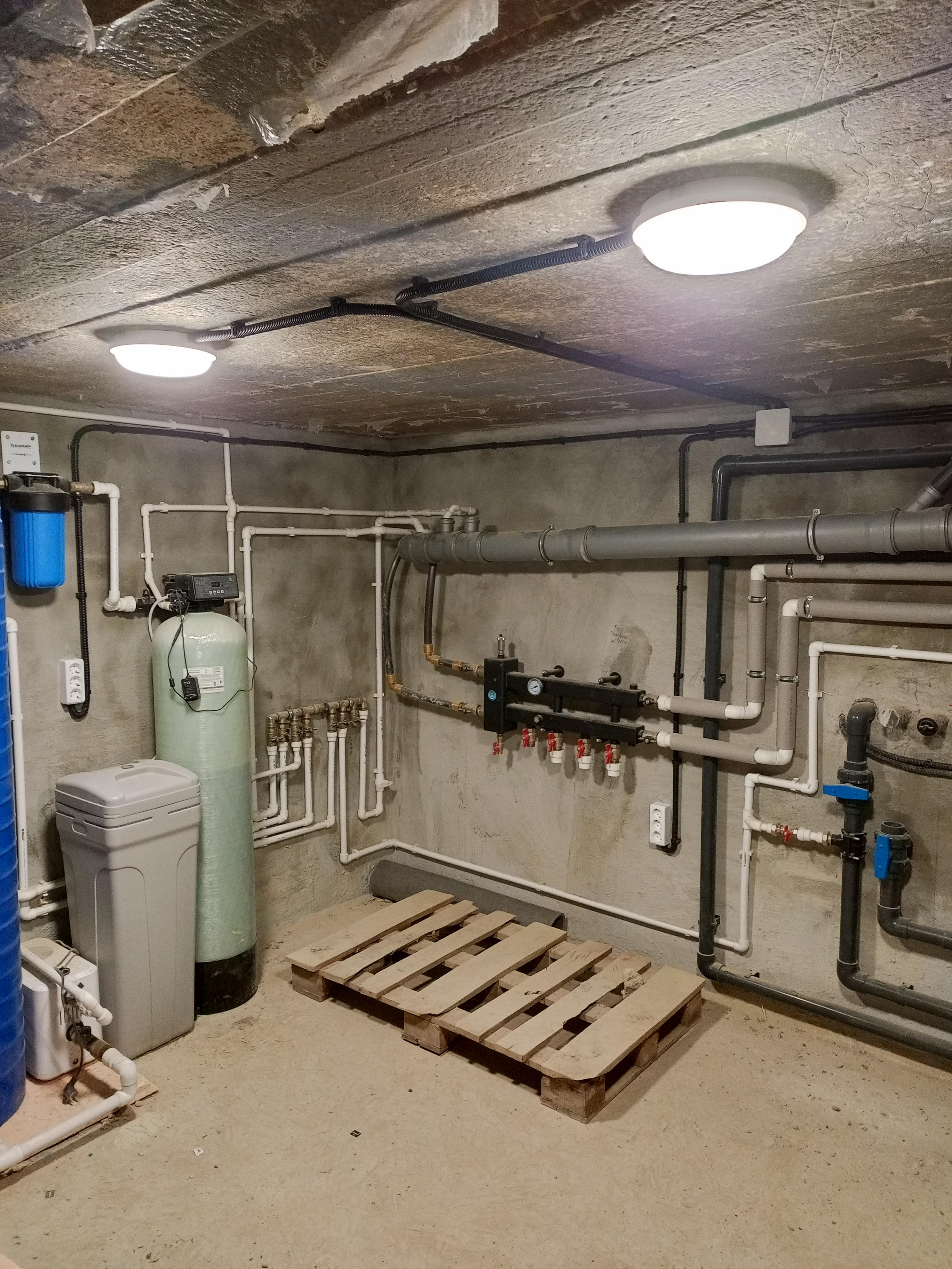 В техническом помещении, подвале установлены недорогие, но надежные, с отличной влагозащитой IP65 светильники EKF LUMA.