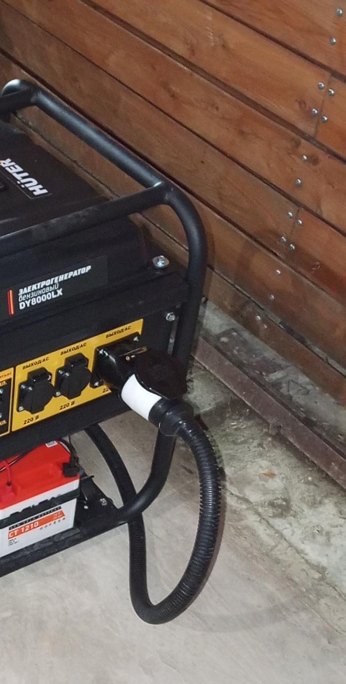 Генератор мощностью 7,5 кВт, для подключения, с учетом падения напряжения берем медный кабель сечением 3*10мм. Кабель укладываем в тяжелой гофротрубе, частично в бетоне, частично по участку в земле.